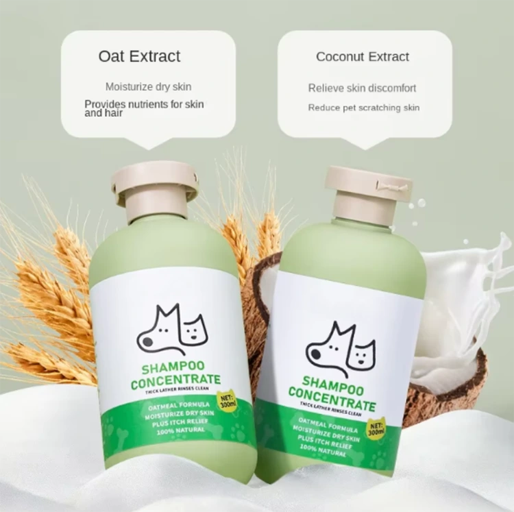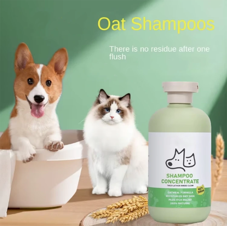 వోట్మీల్ పెట్ షాంపూలో ఓట్ మీల్ మెత్తగాపాడిన పదార్థాలు ఉన్నాయి, ఇది పెంపుడు జంతువులలో చర్మపు చికాకును తగ్గిస్తుంది, వారి చర్మం మరియు జుట్టుకు ఆరోగ్యకరమైన మరియు మరింత సౌకర్యవంతమైన వాతావరణాన్ని సృష్టిస్తుంది. ఇది హైపోఅలెర్జెనిక్ మరియు దురద సమస్యలను శాంతముగా మెరుగుపరుస్తుంది, జుట్టును మెరిసేలా చేస్తుంది. మా ఉత్పత్తిలో చికాకు కలిగించే పదార్థాలు లేవు మరియు రోజువారీ ఉపయోగం కోసం అనుకూలంగా ఉంటుంది.